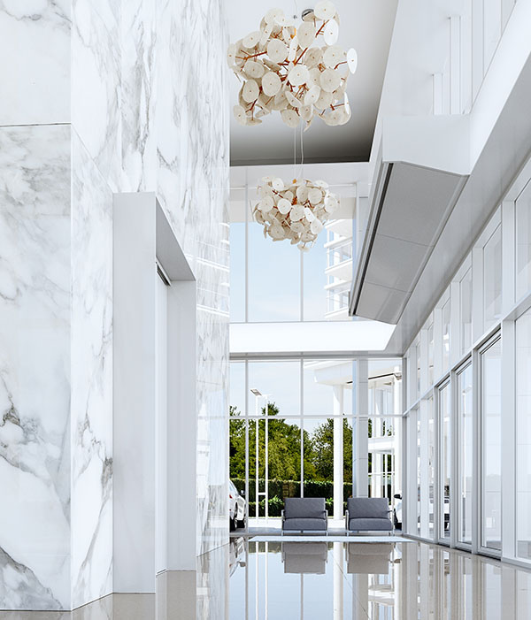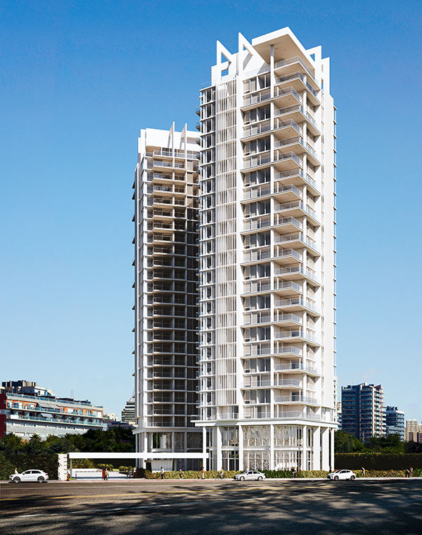 Comprising two high-rise residential towers rotated 45° to allow all units to have views of the Río de la Plata and to ensure that the front-line tower does not obstruct the desired views of the Buenos Aires coastline behind it, this development aims to harmonize functionality with aesthetics. It prioritizes spaciousness accentuated by the double-height terraces created by the duplex apartments and the visual connection with the horizon's landscape.